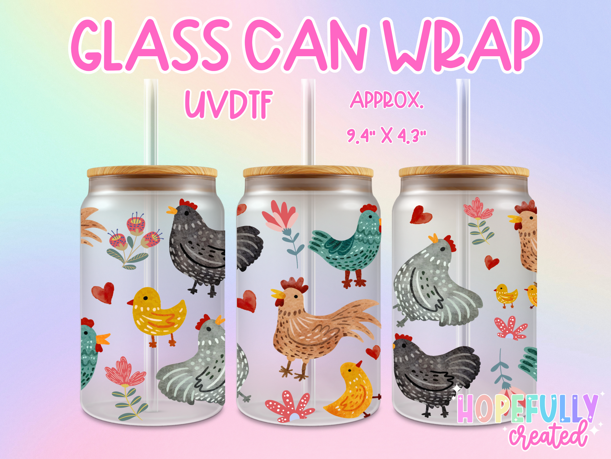 Chickens UVDTF Glass Can Wrap