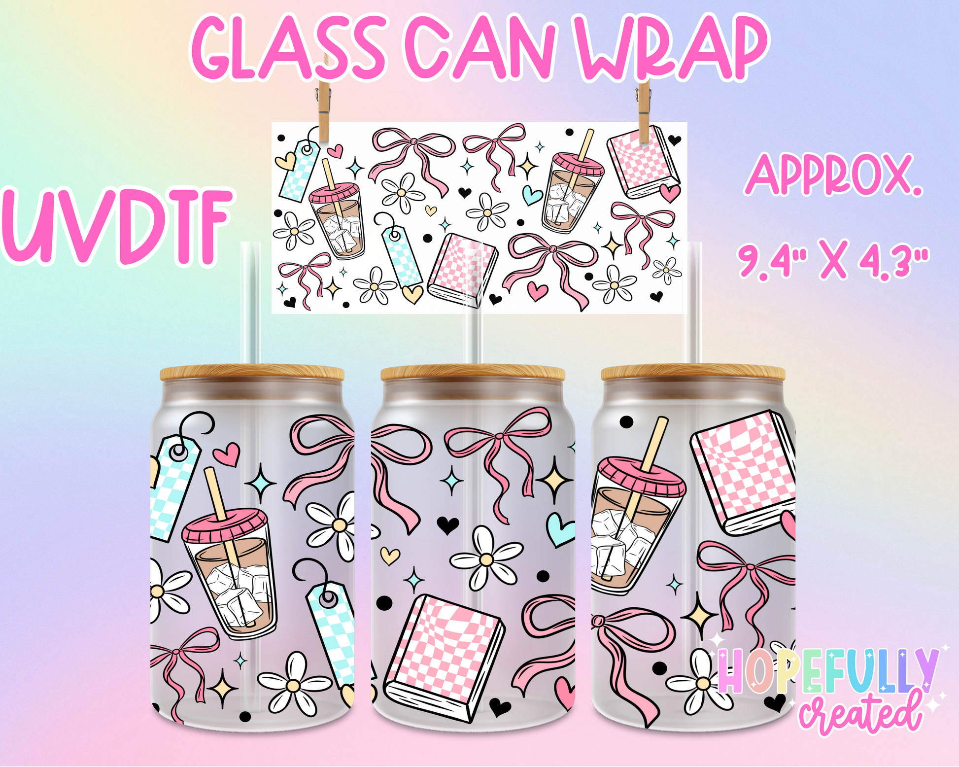 UVDTF Glass Can Wraps measure 9.4 x 4.3 inches.