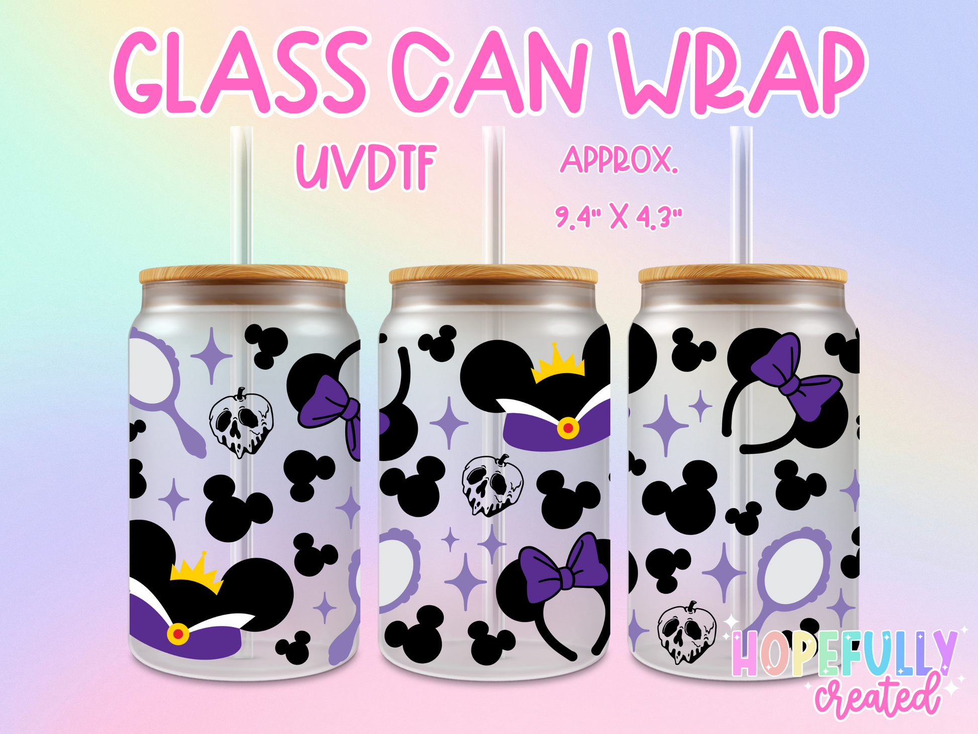UVDTF Glass Can Wraps measure 9.4 x 4.3 inches.