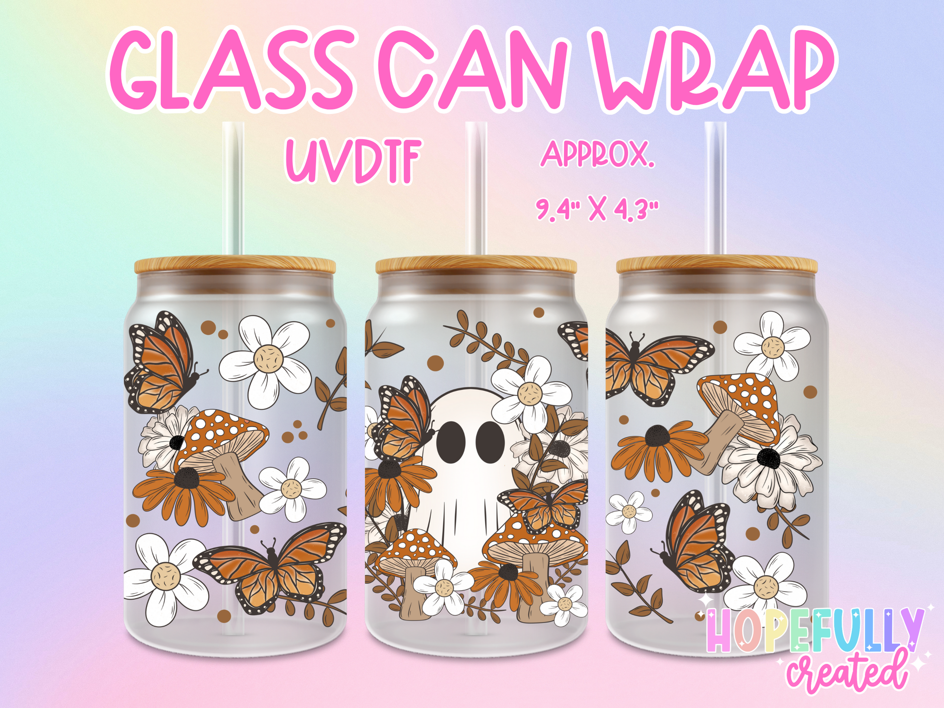 Fall Floral Ghost UVDTF Glass Can Wrap