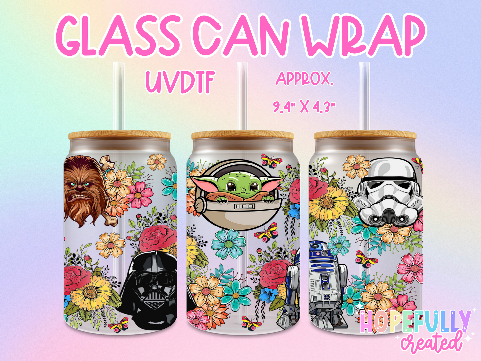 UVDTF Glass Can Wraps measure 9.4 x 4.3 inches.