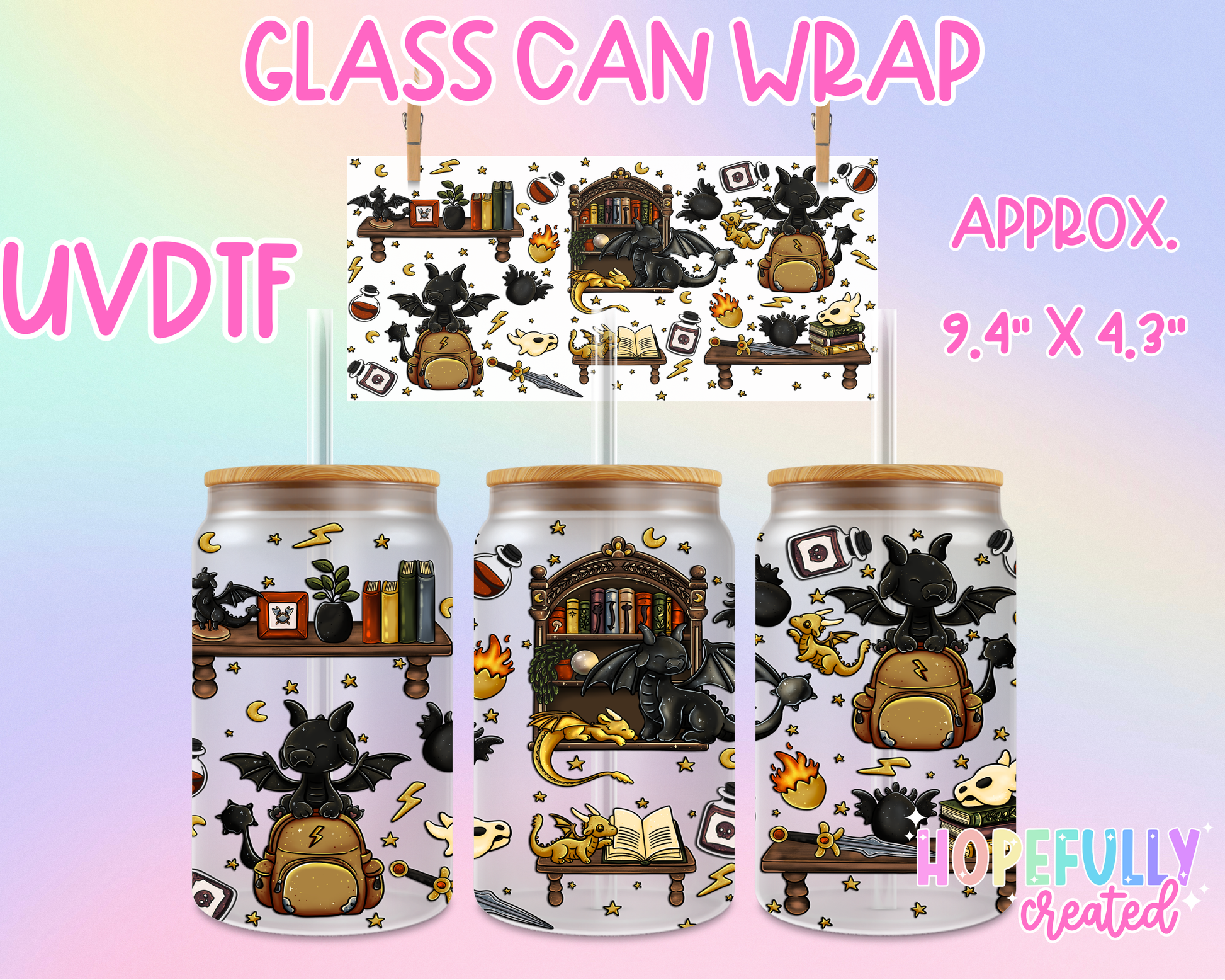 UVDTF Glass Can Wraps measure 9.4 x 4.3 inches.