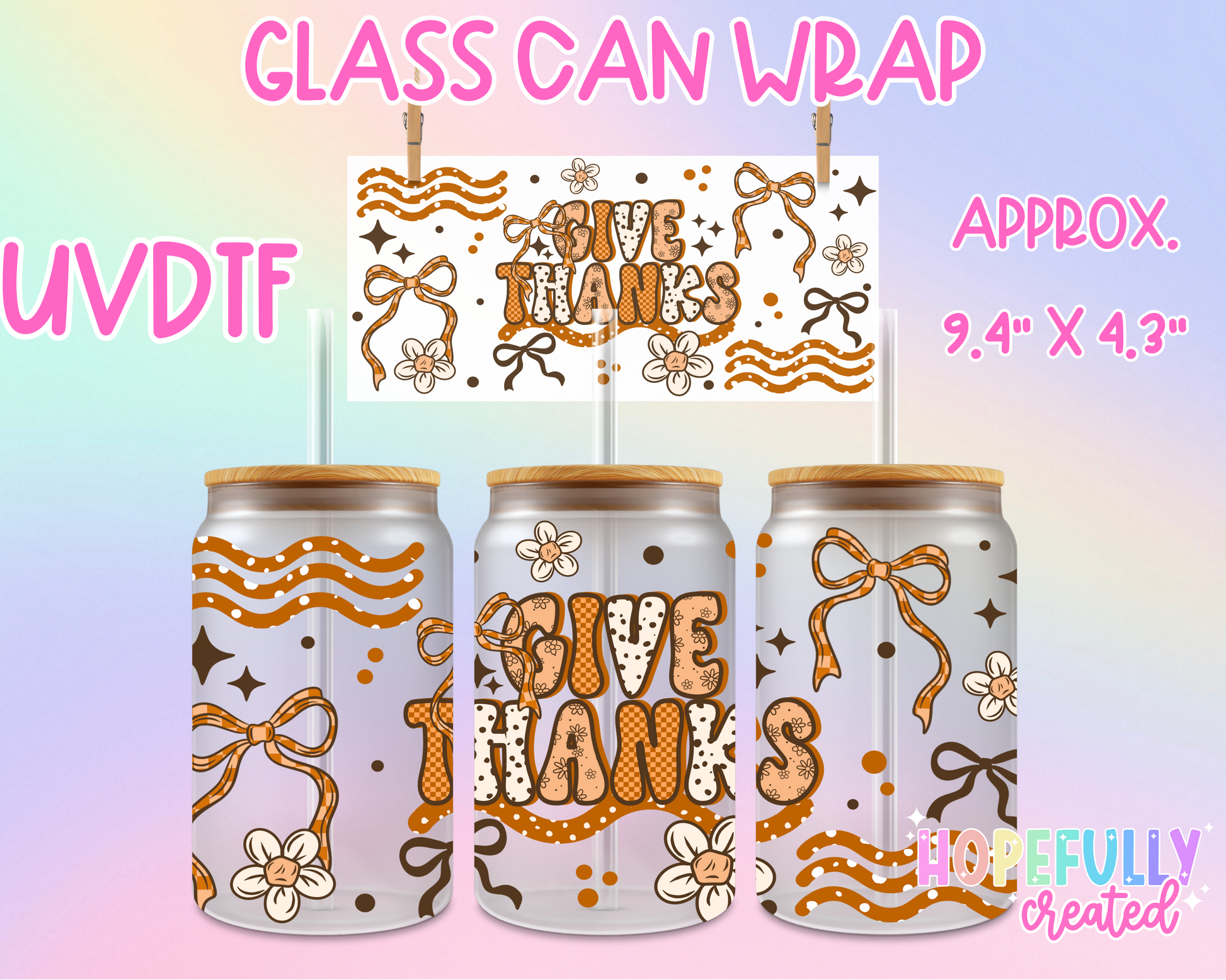 Give Thanks UVDTF Glass Can Wrap