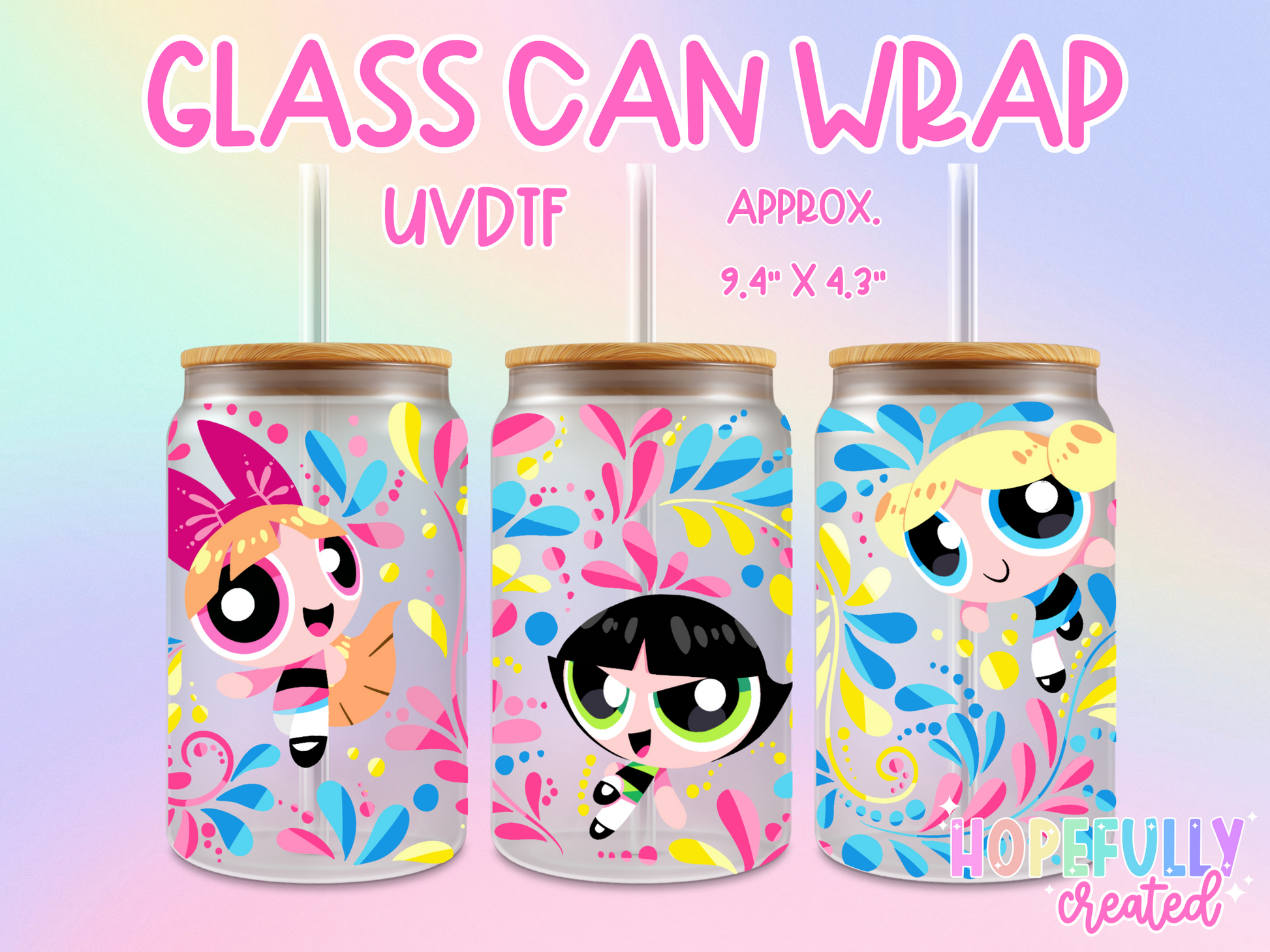UVDTF Glass Can Wraps measure 9.4 x 4.3 inches.