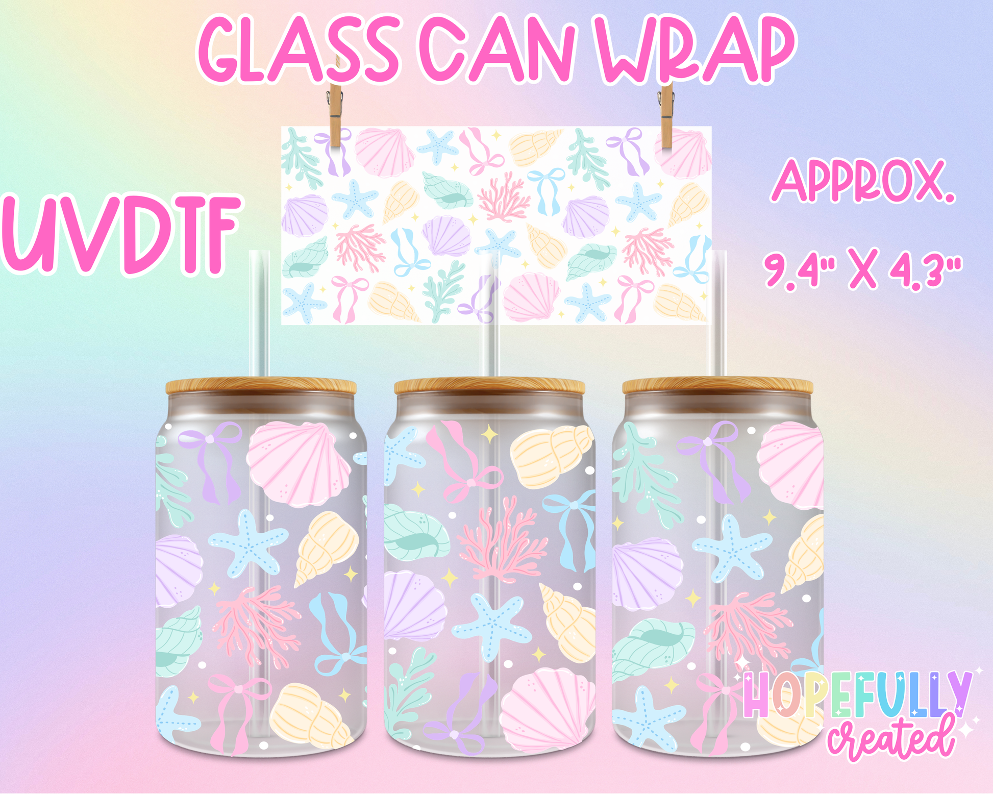 Seashells UVDTF Glass Can Wrap