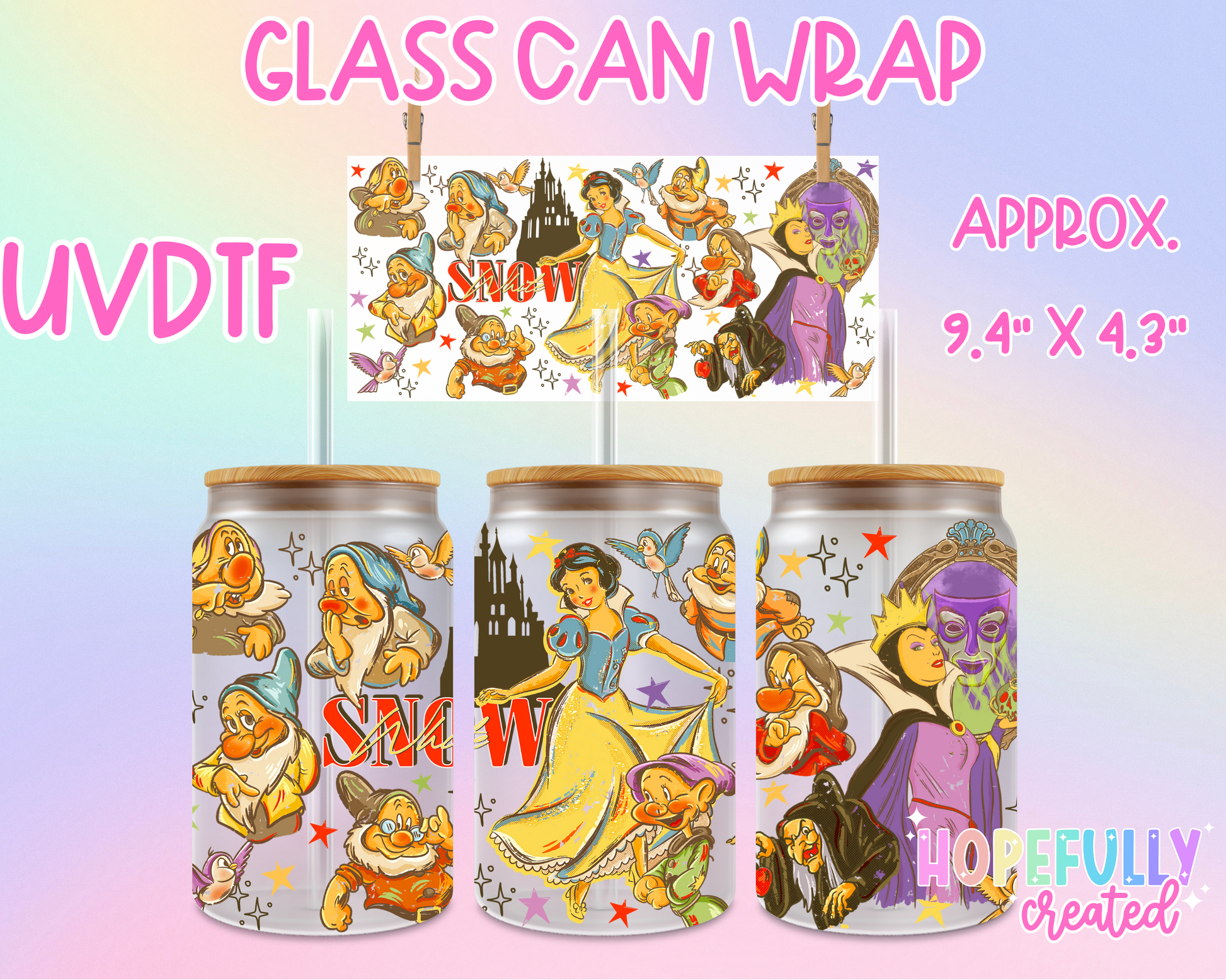 UVDTF Glass Can Wraps measure 9.4 x 4.3 inches.